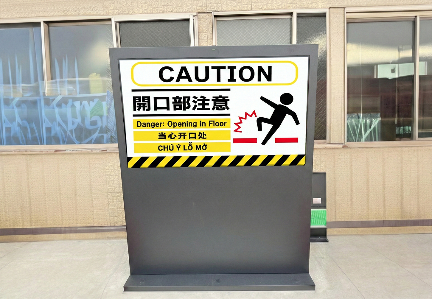 75インチ屋外壁掛けデジタルサイネージと65インチ屋外用自立デジタルサイネージ(横画面)